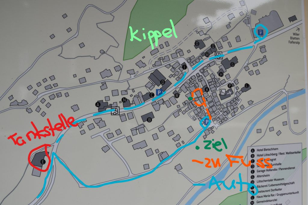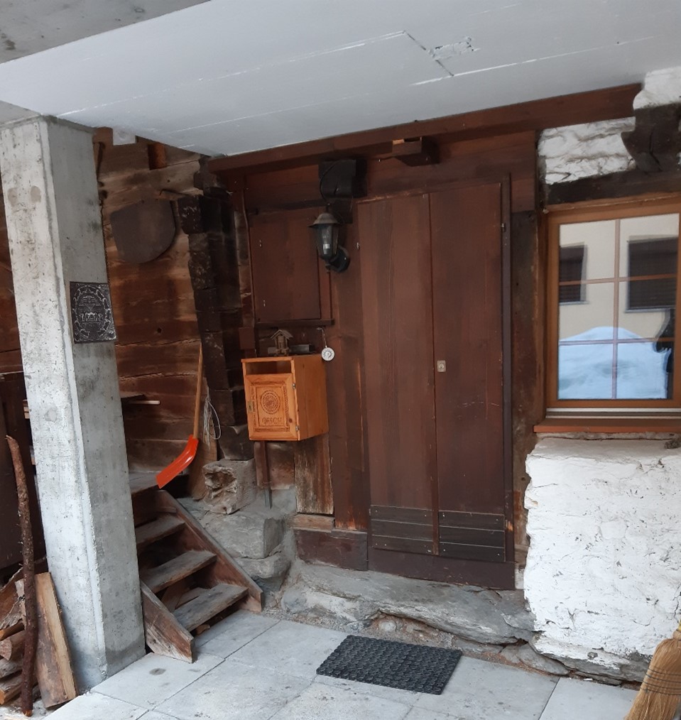 Lage in Kippel; Zufahrt Adresse: Bletschenweg 2, 3917 Kippel VS Aussenansicht/ Zugang: zurück zu Wohnung