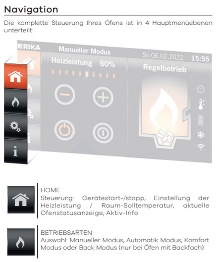 Der Pelletofen (RIKA DOMO Multiair) kann vom Vermieter über Fernsteuerung bedient werden, daher bitte auf keinen Fall brennbare Gegenstände drauflegen!